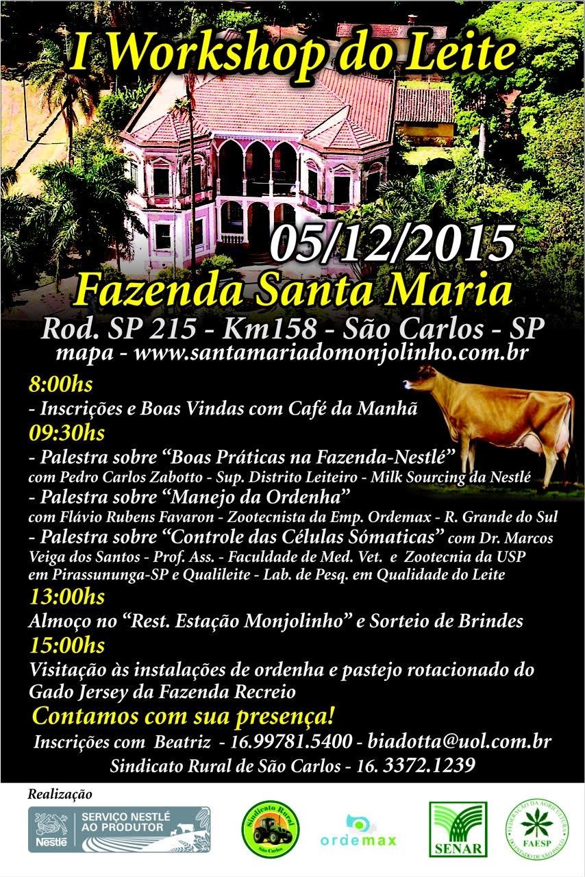 O I Workshop do leite da Fazenda Santa Maria ocorrerá dia 05/12 em São Carlos/SP. Haverão palestras específicas para os produtores de leite e visita técnica. Acesse e confira a programação completa.