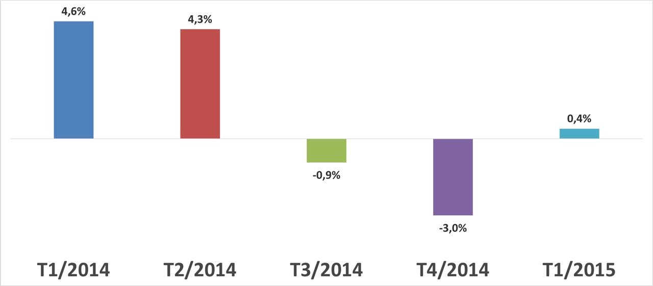 Gráfico 1 - Variação da captação nos principais estados produtores: 1T2015 x 1T2014