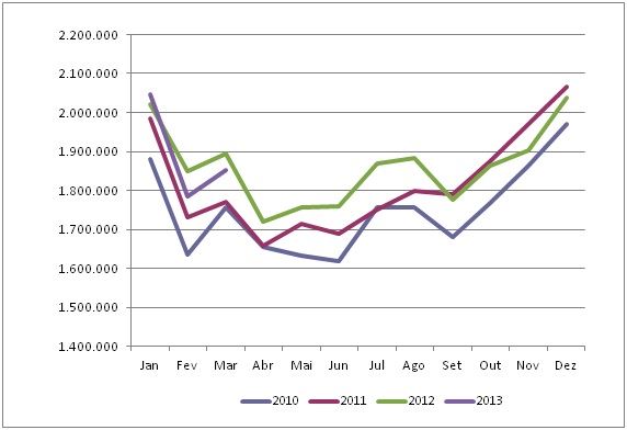 Gráfico 1: Evolução anual da captação de leite pela indústria (em mil litros)