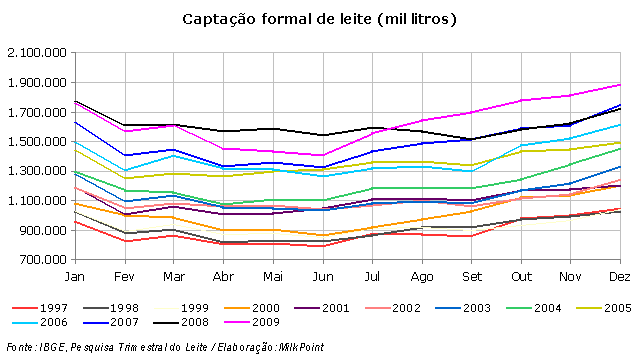 Os dados são da Pesquisa Trimestral do Leite, divulgada pelo IBGE, adaptados e resumidos pela Equipe MilkPoint.