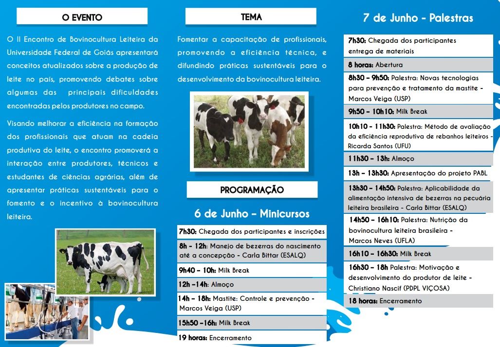 O evento pretende trazer discussões sobre algumas das principais dificuldades encontradas pelo produtor de leite brasileiro, apresentando conceitos atualizados e propondo soluções para o melhor desenvolvimento da atividade. Frente à crescente demanda por mão-de-obra qualificada, visamos fomentar a capacitação técnica de profissionais, além de promover a interação entre produtores, técnicos e estudantes, colaborando para a eficiência na formação dos atuais e futuros profissionais da atividade.