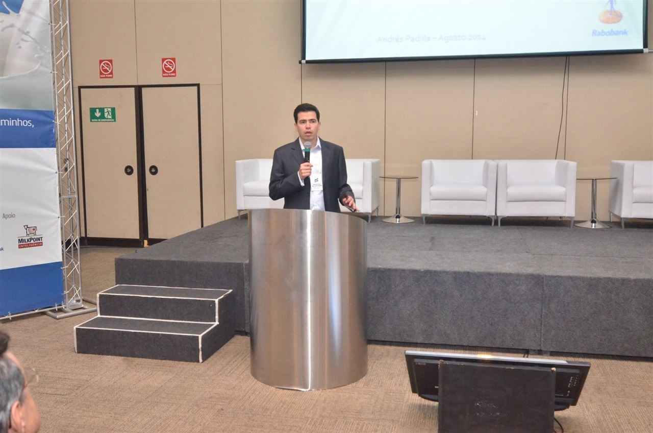 Abrindo o encontro, tivemos a palestra do Rabobank, ministrada por Andres Padilla, analista sênior do Rabobank Brasil, que discutiu sobre tendências para o mercado de leite em 2014/2015. O banco holandês é um dos mais capacitados para compreender as variáveis de mercado, dada sua especialização no setor lácteo e presença global.