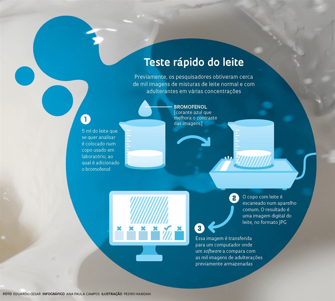 O uso de imagens digitais para análise de alimentos já está registrado na literatura científica. Pode ser usado no controle da qualidade de presunto, na contagem de lactobacilos em leite fermentado e também para determinar o tamanho de grãos de arroz. A partir desses exemplos, o grupo da UFSCar obteve amostras de leite, cedidas por uma empresa de laticínio da região de São Carlos, e fez as adulterações com as cinco principais substâncias normalmente usadas pelos fraudadores, em concentrações de 5% a 50%. Um deles, a água de torneira, é utilizada para aumentar o volume e, com isso, gerar ganho econômico para os falsificadores. O soro, por sua vez, um subproduto da fabricação de queijo, é adicionado ao leite para mascarar a adição de água e manter a concentração de proteína dentro do que determina a legislação nacional (2,9%).
