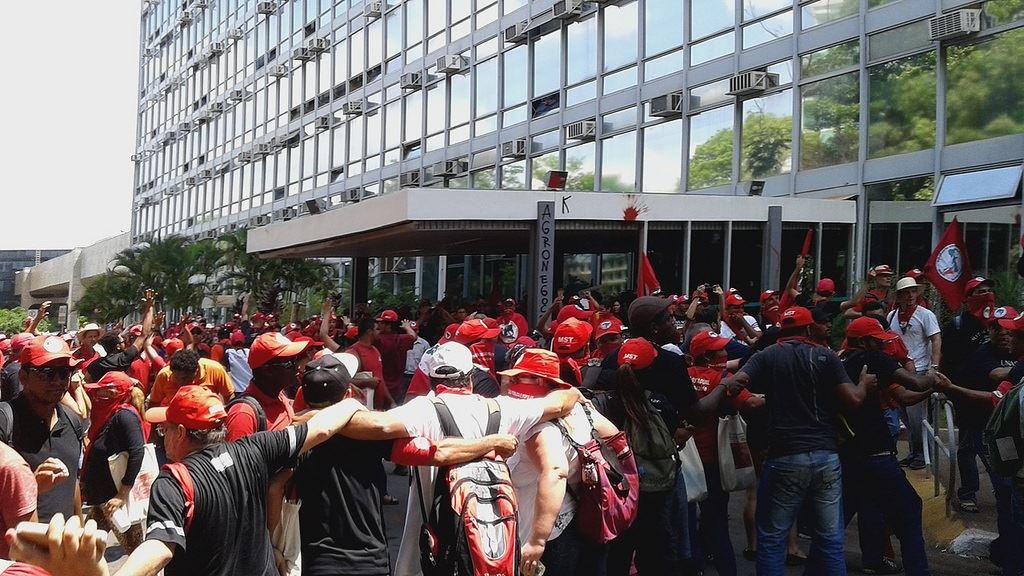 Integrantes do MST invadem e picham prédio do Ministério da Agricultura