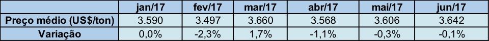Os contratos futuros de leite em pó integral não apresentaram variação para o próximo mês com poucas variações para os meses seguintes, com os contratos de janeiro de 2017 realizados a um preço médio de US$3.590/ton. As projeções até junho indicam manutenção de preços entre US$3.497/ton e US$3.660/ton.