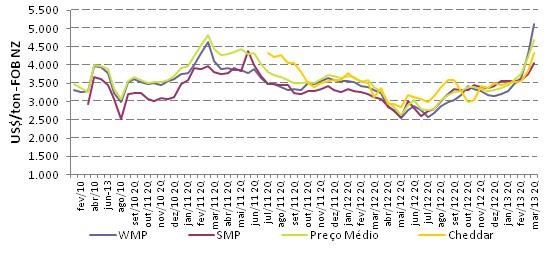 A principal razão da forte subida dos preços é a seca que assola a Nova Zelândia, principalmente a Ilha Norte, que responde por 64% da produção.