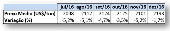 Os contratos futuros de leite em pó integral seguiram o mercado físico e também apresentaram queda. A previsão é de que o atual patamar de preços não se altere muito ao longo do ano, com previsão de preços para dezembro de US$2.193/ton.