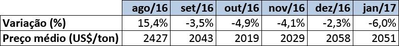Gráfico 1 - Histórico de preços do Leilão GDT.