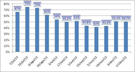 A diferença anual no preço médio dos produtos lácteos apresentou leve queda nesta quinzena, enquanto neste leilão a diferença foi 50,7% superior ao realizado em 2012, no leilão anterior a diferença havia sido de 51,1%. No entanto, os preços do Global Dairy Trade continuam muito acima dos níveis observados no ano passado.