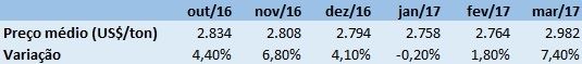 Tabela 1 - Preços futuros do Leilão GDT.