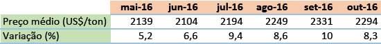 Tabela 1 - Preços futuros de leite em pó integral.