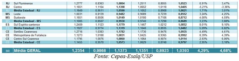 As informações são do CEPEA/USP.