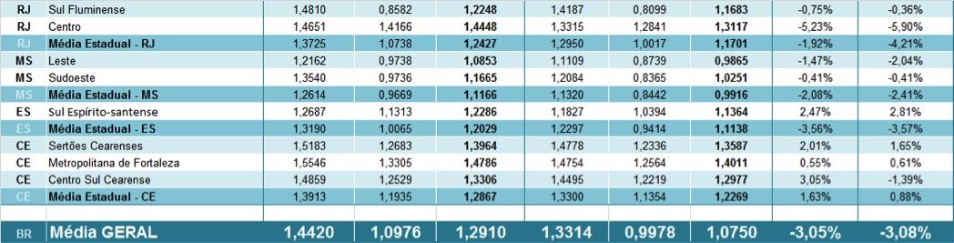 Tabela 2. Preços em estados que não estão incluídos na “média Brasil” – RJ, MS, ES e CE