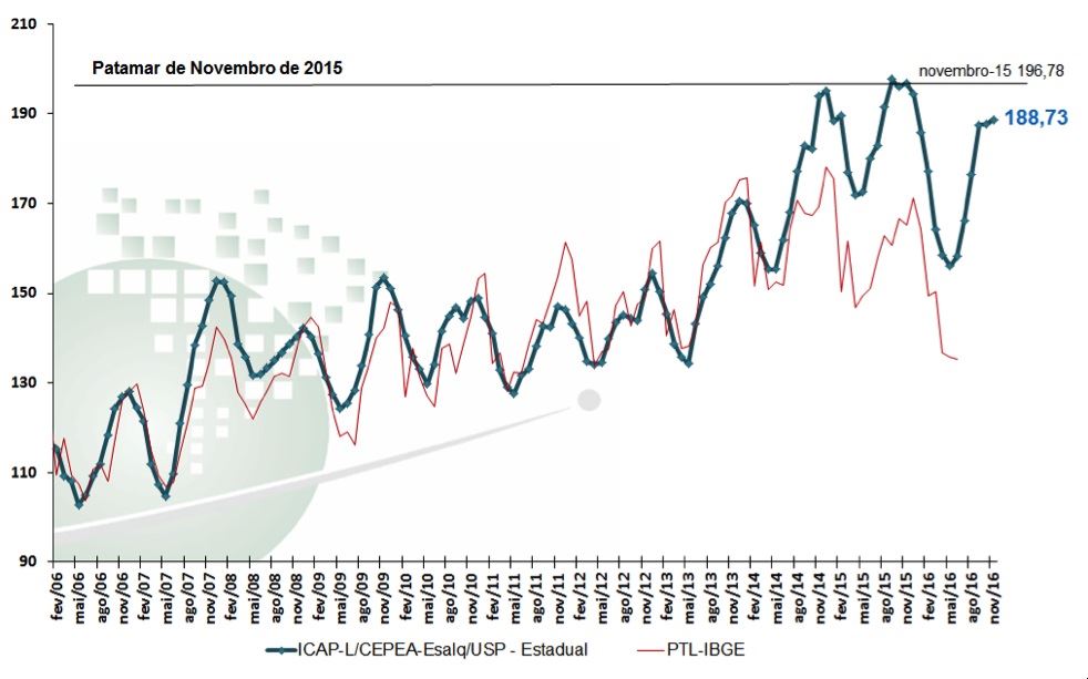 Gráfico 2: ICAP-L/Cepea – Índice de Captação de Leite – Novembro/16. (Base 100=Julho/2004)