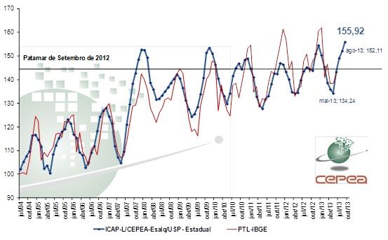 Gráfico 1: ICAP-L/Cepea - Índice de Captação de Leite - SETEMBRO/13. (Base 100=Junho/2004)