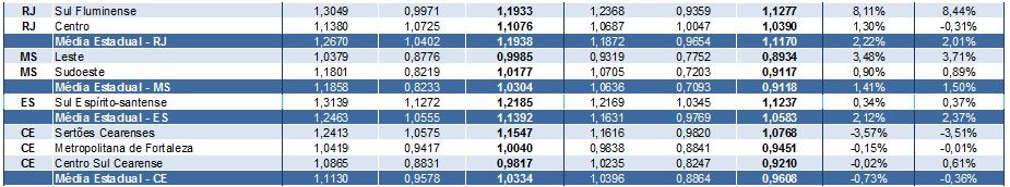 Já quanto aos estados que não compõem a “média Brasil”, houve alta de 2,35% no Espírito Santo, de 2,01% no Rio de Janeiro, de 1,5% em Mato Grosso do Sul e de apenas 0,73% no Ceará.