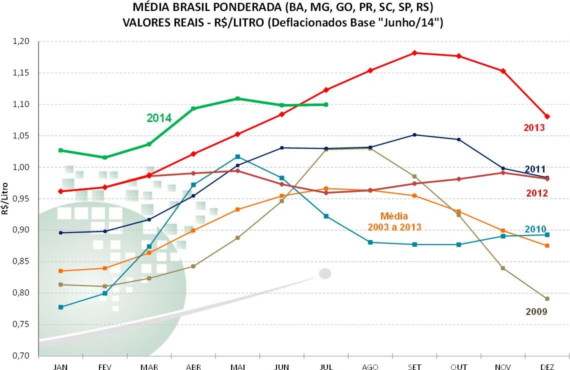Colaboradores do Cepea informam que a demanda por derivados ainda esteve pouco aquecida neste mês de final da Copa e férias escolares, refletindo em maiores estoques nesse período e na diminuição dos preços ao produtor.