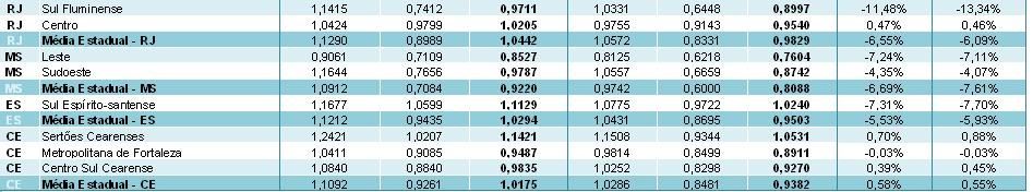 Tabela 2. Preços em estados que não estão incluídos na “média nacional” – RJ, MS, ES e CE