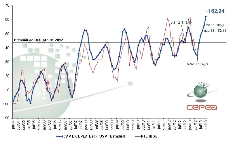 Gráfico 1: ICAP-L/Cepea - Índice de Captação de Leite - OUTUBRO/13. (Base 100=Junho/2004)