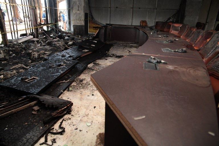 A portaria privativa do Ministério da Agricultura ficou interditada durante toda esta quinta-feira (25) para a realização das pericias da Defesa Civil, Polícia Federal e do Corpo de Bombeiro. Além dos vidros quebrados na entrada do prédio, foram destruídos quatro ambientes internos do Mapa no térreo e na sobreloja. No salão de atos, foram queimados três sofás, parte do teto desabou e destruídas todas as fotos da galeria de ex-ministros.