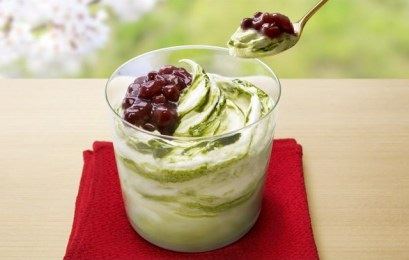 Mc Flurry de chá verde e azuki: a sobremesa é feita com sorvete de uji matcha, cobertos com azuki de Hokkaido. Preço 280 ienes. A sobremesa ficará até a metade do mês de maio.