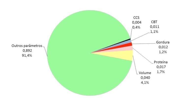Podemos observar que os parâmetros de qualidade, composição e volume respondem, no estudo realizado pelo MilkPoint Mercado, por cerca de 8,6% do preço líquido pago ao produtor. Deste montante, cerca da metade (4,1%) corresponde à bonificações por volume, enquanto a soma de gordura e proteína corresponde à 2,9%. Assim, podemos concluir que, em média, o volume tem participação quase 40% maior na composição dos preços recebidos pelos produtores.
