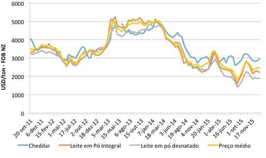 Diante do quadro de oferta grande e preços baixos do leite, a tendência é que a produção da matéria-prima cresça em ritmo mais lento nos países da União Europeia, avalia o analista. Segundo ele, já há relatos de empresas europeias pagando bônus a produtores que entregarem menos leite. Na Nova Zelândia, a estimativa também é de uma queda de 6% na produção de leite na safra 2015/16.