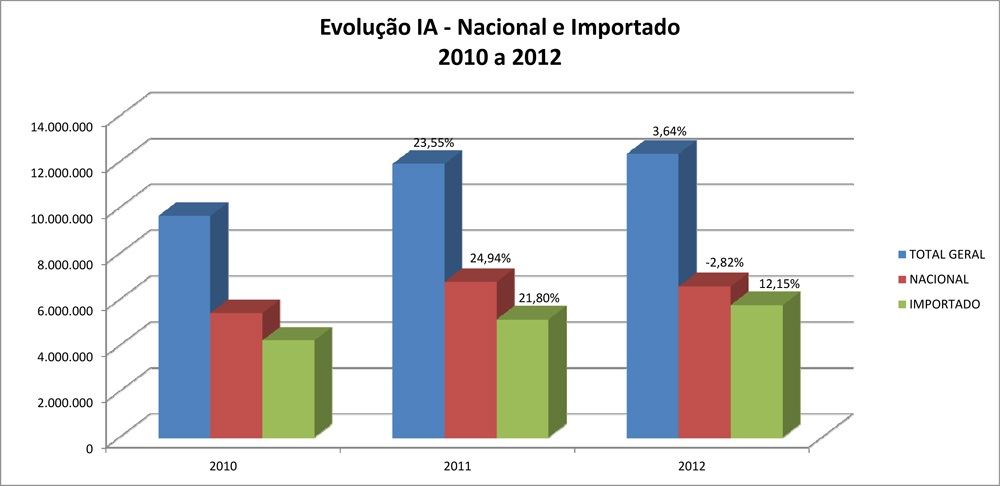O citado aumento das vendas de sêmen em 2012 foi impulsionado principalmente pela comercialização de produtos internacionais, que manifestou um crescimento de 12,15%, pois as vendas de sêmen nacional caíram 2,82% em comparação com 2011, que ainda assim representaram 53,29% do total de sêmen comercializado no mercado nacional. Quando comparados separadamente o uso de sêmen na pecuária de corte e de leite, os crescimentos apresentados pelo INDEX de 2011 de 26,81% e 19,16%, respectivamente, caíram para 6,15% e 0,05% em 2012. Diante das informações divulgadas pela ASBIA, observa-se que a participação do uso de sêmen para inseminação artificial (IA) na bovinocultura de leite vem apresentando sucessivas quedas desde 2008, quando chegou a apresentar 50,20%, representando em 2012 apenas 39,69% do sêmen comercializado no país.