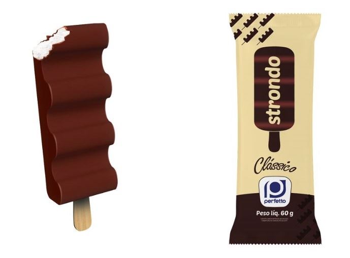 Perfetto apresenta ao mercado brasileiro o Strondo, picolé extrusado em formato de ondas que promete ser a sensação do verão. O picolé, visualmente falando, lembra uma barra de chocolate gelada, porém cremosa por conta do extrusado (processo de fabricação que deixa o sorvete muito mais macio).