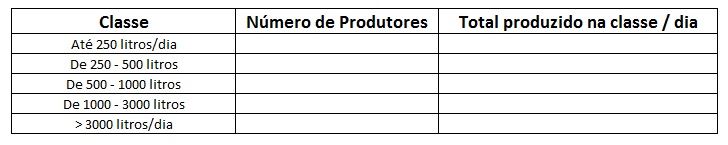 É muito simples. Utilizando a classificação utilizada pelo IBGE, acrescida de alguns níveis de produção mais elevados, vamos levantar, junto aos principais laticínios, quantos produtores e quantos litros de leite em média são produzidos em cada classe: