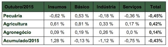 No balanço dos primeiros dez meses do ano, os segmentos de insumos (0,09%) e primário (0,19%) também tiveram resultado positivo, enquanto o de serviços permaneceu estável.