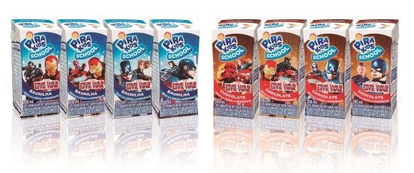 A Piracanjuba apresenta o leite aromatizado Pirakids School. Segundo o fabricante, o produto é rico em cálcio e vitamina D, fonte de minerais ferro, zinco (quelatos), além das vitaminas A, C, E, B1 e B12. As embalagens cartonadas assépticas de 200 mililitros, fornecidas pela Tetra Pak, estampam super-heróis do filme Civil War (Guerra Civil), da Marvel.