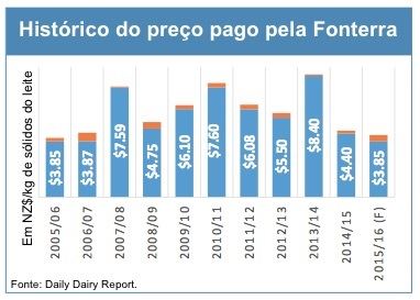 A Fonterra anunciou sua previsão de dividendo de 40-50 centavos (26,4-33 centavos de dólar) por ação. No total, o dividendo e o preço do leite fornecem uma estimativa de preço total entre NZ$ 4,25 e NZ$ 4,35 (US$ 2,80 e US$ 2,87) por quilo de sólidos do leite – NZ$ 0,35-NZ$ 0,36 (US$ 0,23-US$ 0,24) por quilo de leite. O preço pago pela Fonterra equivale a um preço nos Estados Unidos entre US$ 18,23/100 kg e US$ 18,63/100 kg, significativamente a menos do que os preços futuros atuais dos leites Classe III e Classe IV no CME.