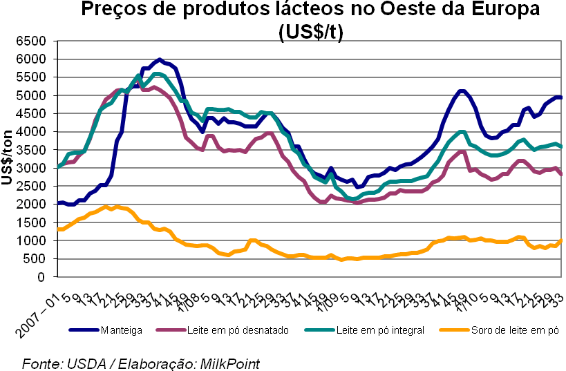 Agosto é o mês de férias para muitos europeus, ocasionando uma redução no consumo de lácteos. Em termos de formação de preço, a Rússia tem sido um importante agente, com interesses crescentes, devido a uma seca que tem prejudicado sua produção de grãos, e consequentemente, de leite.