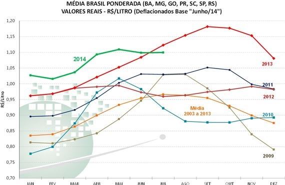 Para os próximos meses, as expectativas ainda são de aumento na produção do Sul do país e, mais para o final do ano, no Sudeste e Centro-Oeste. Por outro lado, é esperada melhora no consumo, com certa retomada na economia após a Copa.
