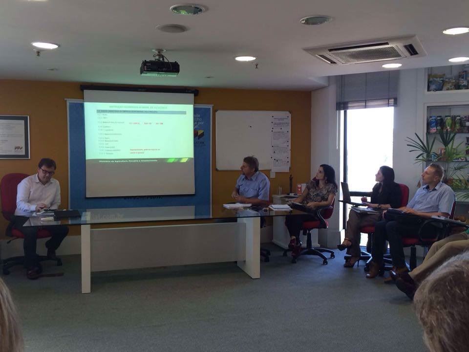 O Presidente em exercício do Sindilat/RS, Guilherme Portella, reuniu na manhã da última sexta-feira (29/01) representantes das empresas associadas e do Ministério da Agricultura, por meio dos fiscais federais Roberto Lucena e Leonardo Toss, para explicar e tirar dúvidas sobre os projetos protocolados no Ministério da Agricultura (MAPA) que preveem ações de fomento, assistência técnica e boas práticas agropecuárias, o que permite às empresas se creditarem de benefício tributário de pis/cofins e reinvestirem recursos na qualificação do processo produtivo.