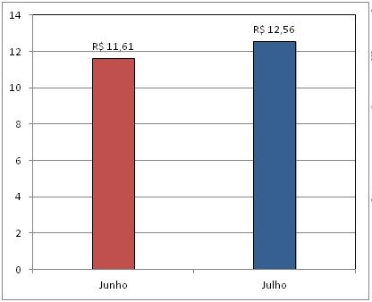 Se analisarmos somente os produtores que participaram nas duas edições, a variação da RMCA foi um pouco menor. Enquanto a média de junho destes produtores foi de R$13,11, em julho subiu 6,3%, chegando a R$13,94/vaca/dia. Um dado interessante é que, mesmo com custo de alimentação expressivamente mais alto entre junho e julho(11%), estes produtores conseguiram obter uma RMCA maior, devido a aumentos na produtividade por vaca (4%) e no preço recebido pelo leite (3,8%).