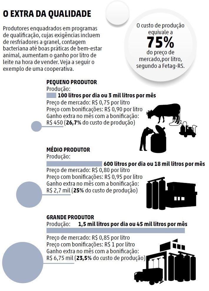 A remuneração da produção por qualidade, e não apenas pelo volume entregue, passou a ter maior importância nas indústrias do Rio Grande do Sul depois da sequência de fraudes descobertas para maquiar más condições do produto — o caso mais recente veio à tona há duas semanas, na oitava etapa da Operação Leite Compen$ado.