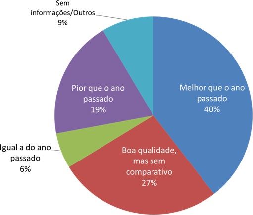 Em relação à qualidade do material produzido em relação a safra passada, o gráfico 03 mostra a opinião reportada pelos produtores pesquisados.