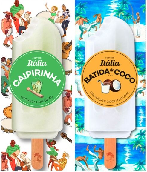 A Sorvete Itália desenvolveu uma linha de picolés alcóolicos inspirados em duas bebidas que são a cara do Brasil: caipirinha e batida de coco. O primeiro é feito como o famoso drink, cachaça com limão, o outro é fabricado com leite de coco, leite condensado, coco e cachaça. Os produtos são uma homenagem à cultura nacional e ganharam embalagens inspiradas em ícones que representam as tradições do país, que levam a assinatura do Studio Fernanda Schmidt.