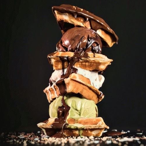 8. Lembra quando falamos que o local faz verdadeiras obras de arte com gelato? Pois é. Olha só essa torre de waffle!