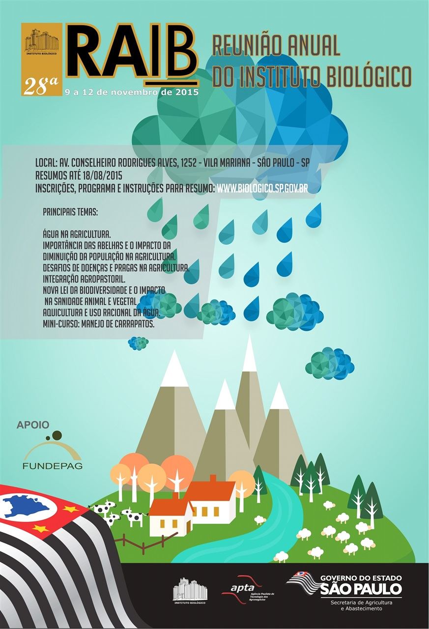 A 28ª edição do Reunião Anual do Instituto Biológico, promovido pelo Fundepag, será realizada entre os dias 09 a 13 de novembro de 2015. O evento acontecerá na cidade de São Paulo - SP. A RAIB é um evento que proporciona aos participantes, inovações e tecnologias no agronegócio, favorecendo a reflexão sobre problemas e soluções para a agricultura brasileira