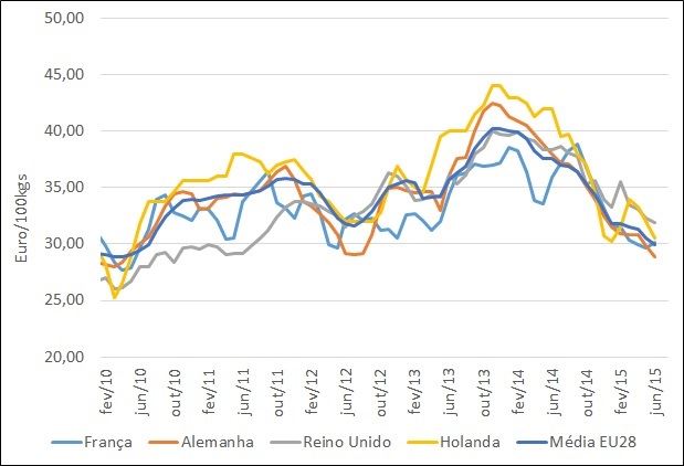 Os mercados mundiais continuaram enfraquecendo, particularmente à medida que as importações chinesas caíram de forma significativa em resposta à desaceleração econômica e aos grandes estoques residuais de leite em pó desnatado. Entretanto, os produtores da UE reduziram a produção de leite até a primavera de 2015, tarde demais para evitar as multas por ultrapassarem a cota de produção em seu último ano. Como resultado, 13 estados membros deverão ter multas, totalizando €800 milhões (US$ 892,59 milhões) em 2015, comparado com €409 milhões (US$ 456,33 milhões) de 8 estados membros em 2014.