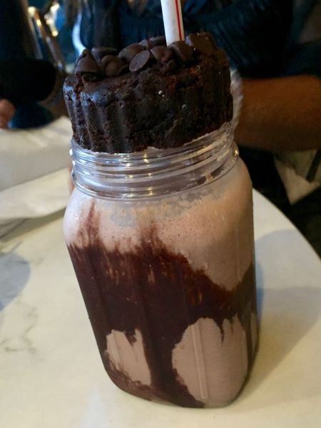 Brownie Milkshake: sorvete de chocolate holandês, brownie e calda de chocolate ao leite. Preço: 13 dólares.