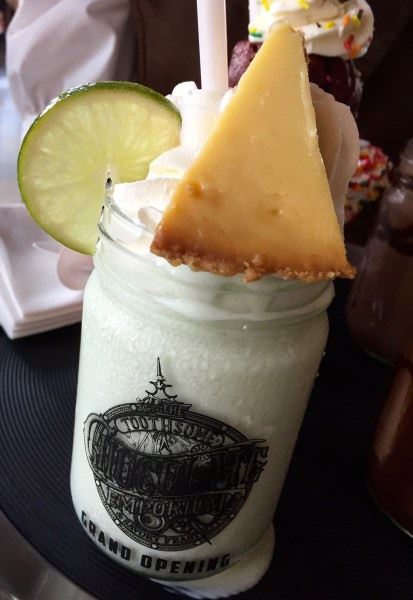 Key Lime Pie Milkshake: sorvete de creme de leite, leite condensado, suco de limão, açúcar cal e uma rodela de limão. Preço: 12 dólares.