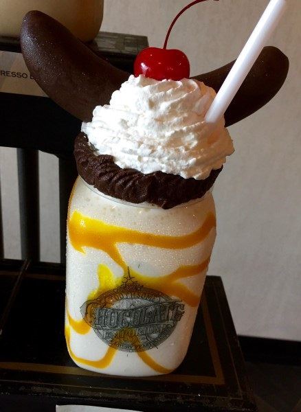 Chocolate Banana Freeze Milkshake: sorvete de baunilha, extrato de banana, banana coberta de chocolate, chantilly e cereja. Preço: 12 dólares.