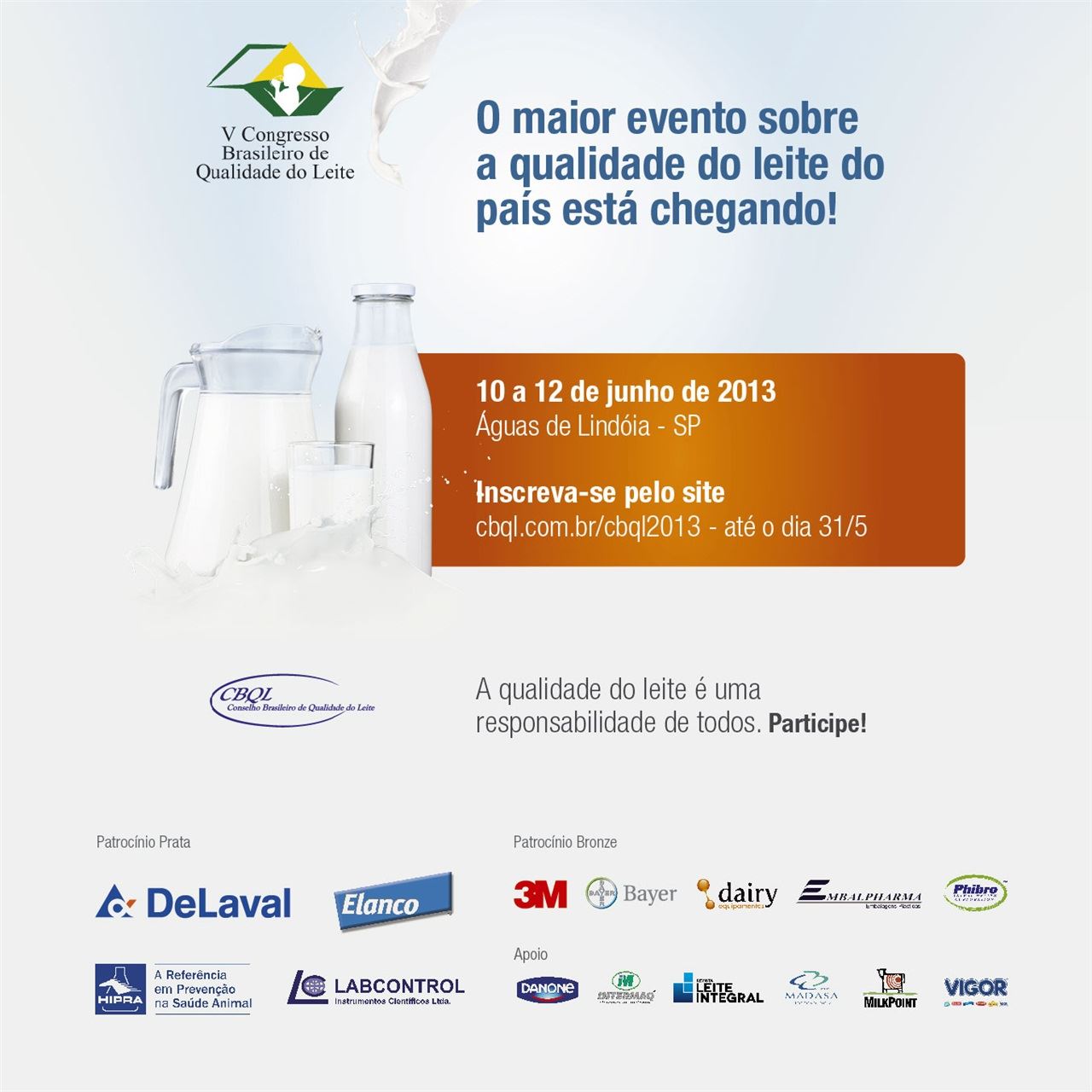 V Congresso Brasileiro de Qualidade do Leite acontece nos dias 10 a 12 de junho