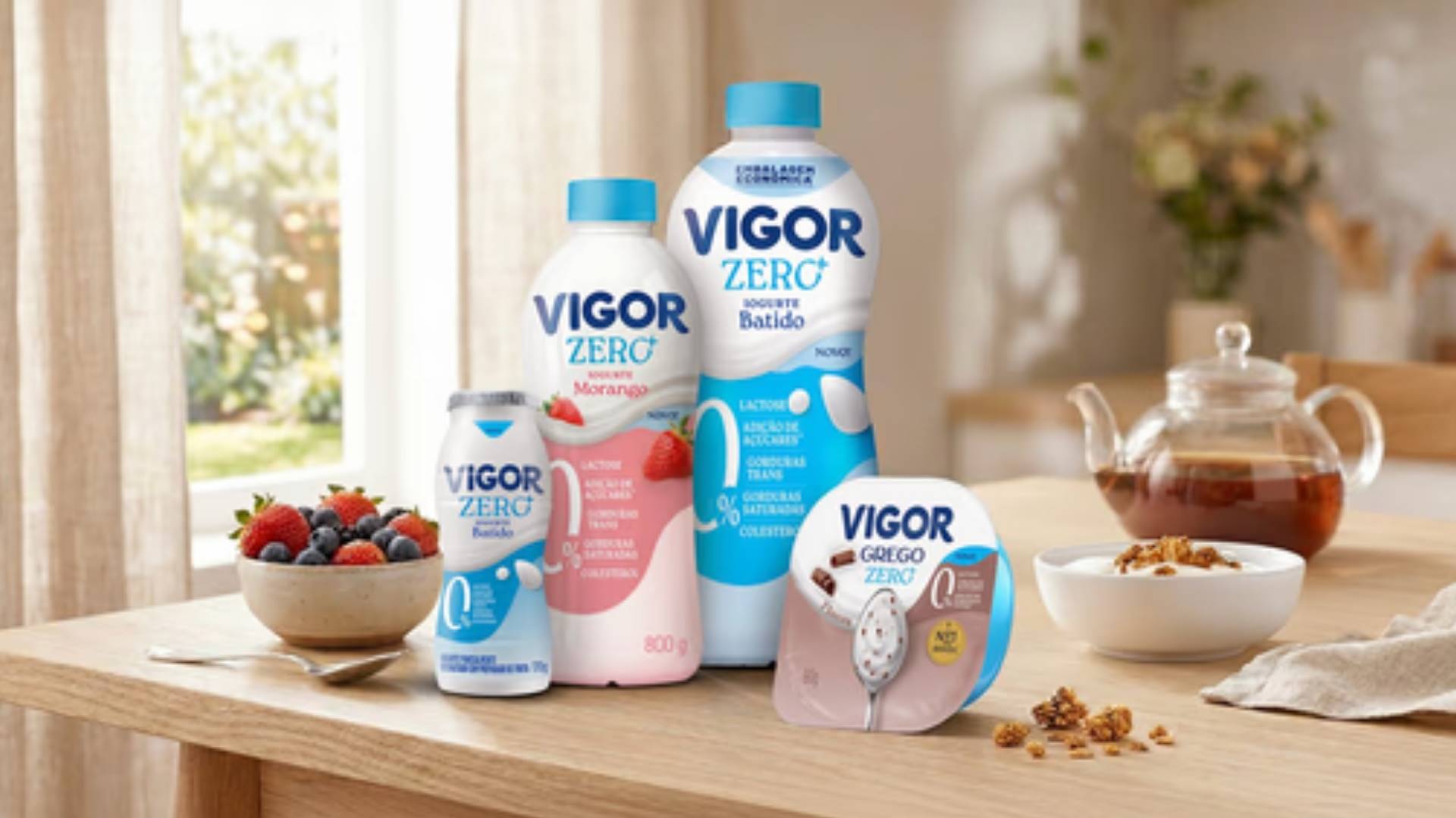 No caso do Vigor Líquido Zero+, a fórmula reúne cinco atributos: zero lactose, zero adição de açúcares, zero gorduras trans, zero gorduras saturadas e zero colesterol, além de redução de 55% das calorias em relação à versão tradicional. Por enquanto, a novidade chega apenas na linha de iogurtes, mas estudos já estão sendo feitos na linha de queijos.