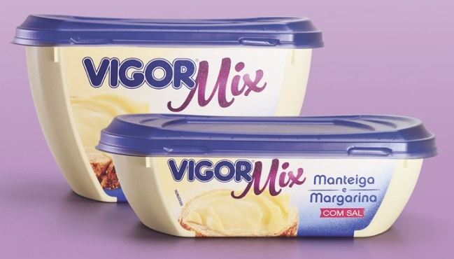 Outra novidade está na embalagem. O seu formato “barqueta” garante um design exclusivo, criando um impacto super visual na prateleira. Trata-se de um modelo totalmente diferenciado para a categoria, que também só existe na Vigor. A mudança no rótulo/formato é outra grande aposta para este ano. A nova Vigor Mix se apresenta nas versões: 500 gramas com sal e sem sal e 250 gramas com sal.